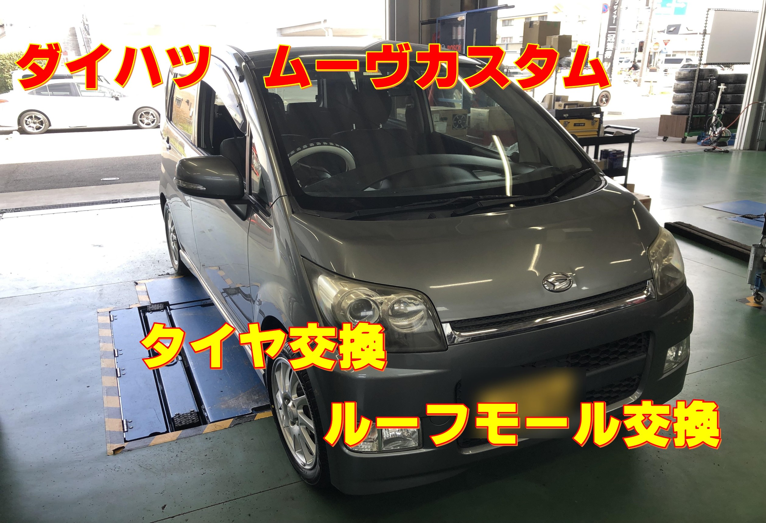 ダイハツ ムーヴカスタム タイヤ交換、ルーフモール交換