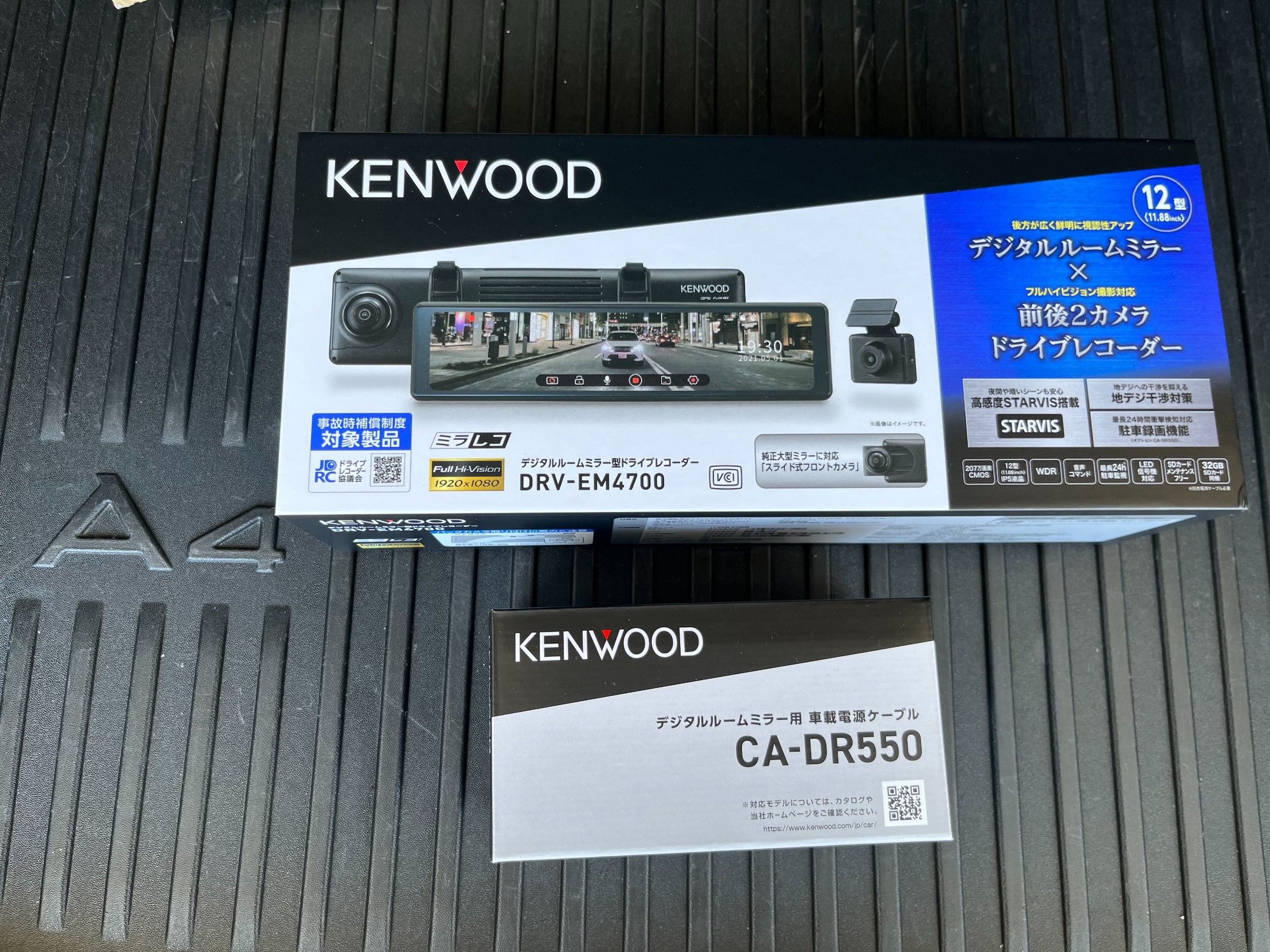 KENWOODミラー型ドラレコDRV-EM4700/駐車監視用電源ケーブルCA-DR550