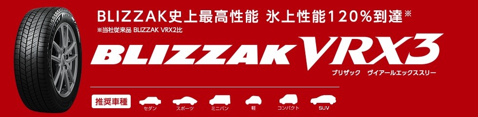 VRX3 ブリザック史上最高性能 氷上性能120%到達※当社従来品 BLIZZAK VRX2比