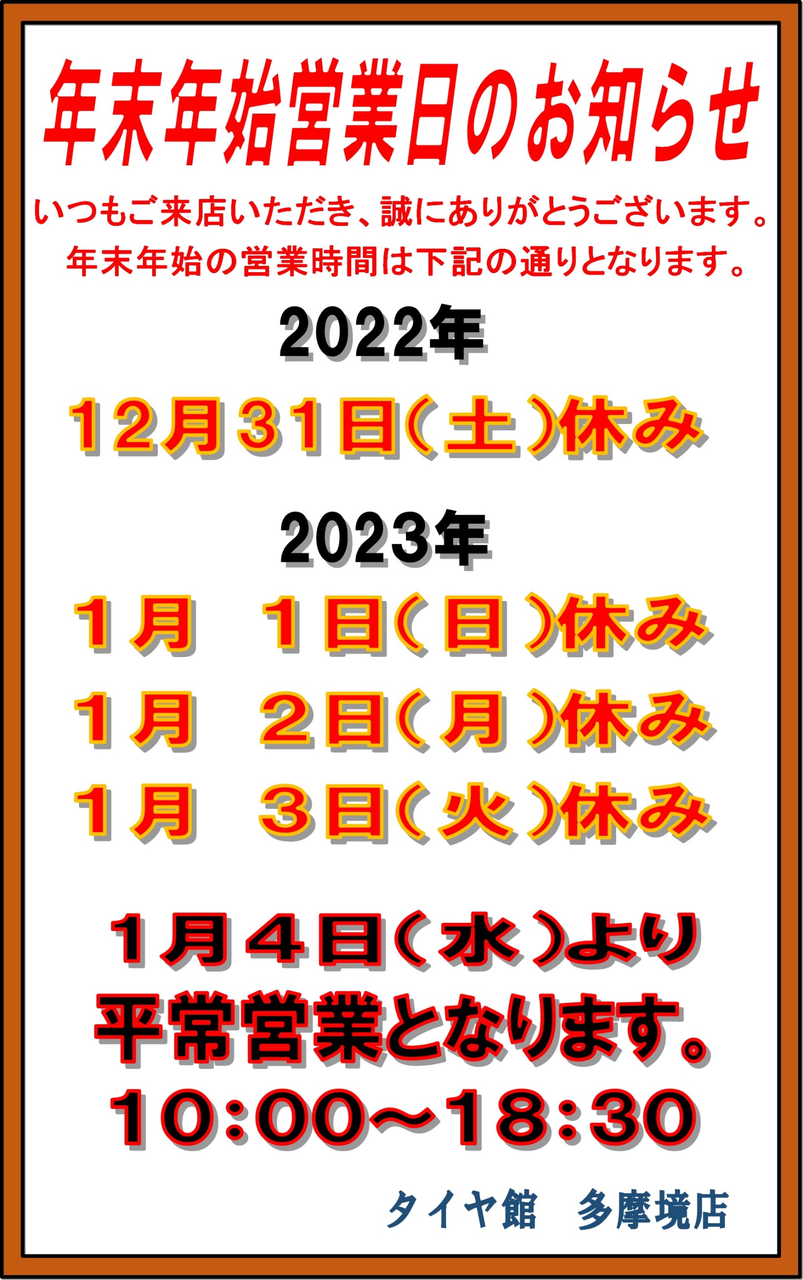 年末年始のお知らせ!