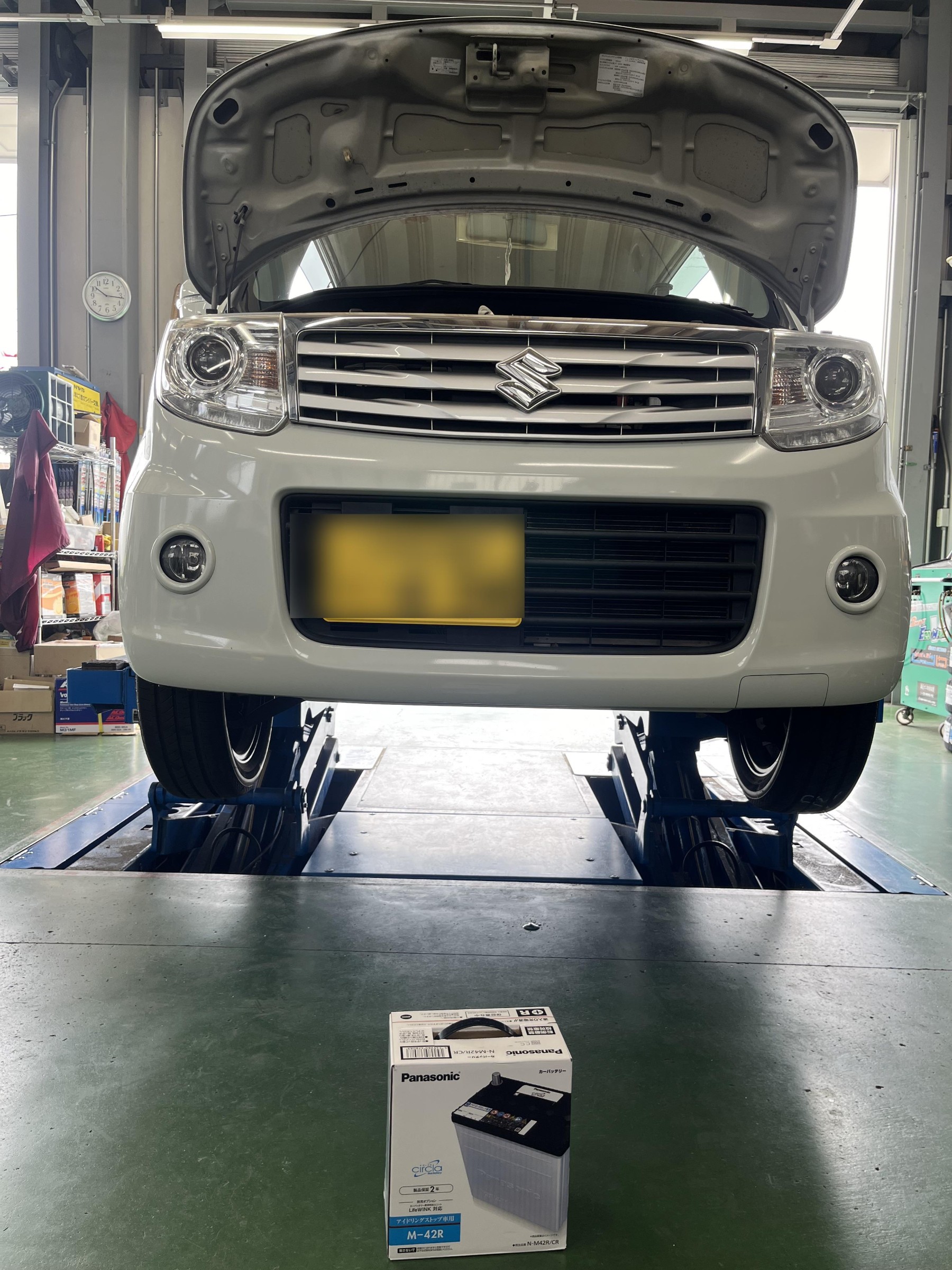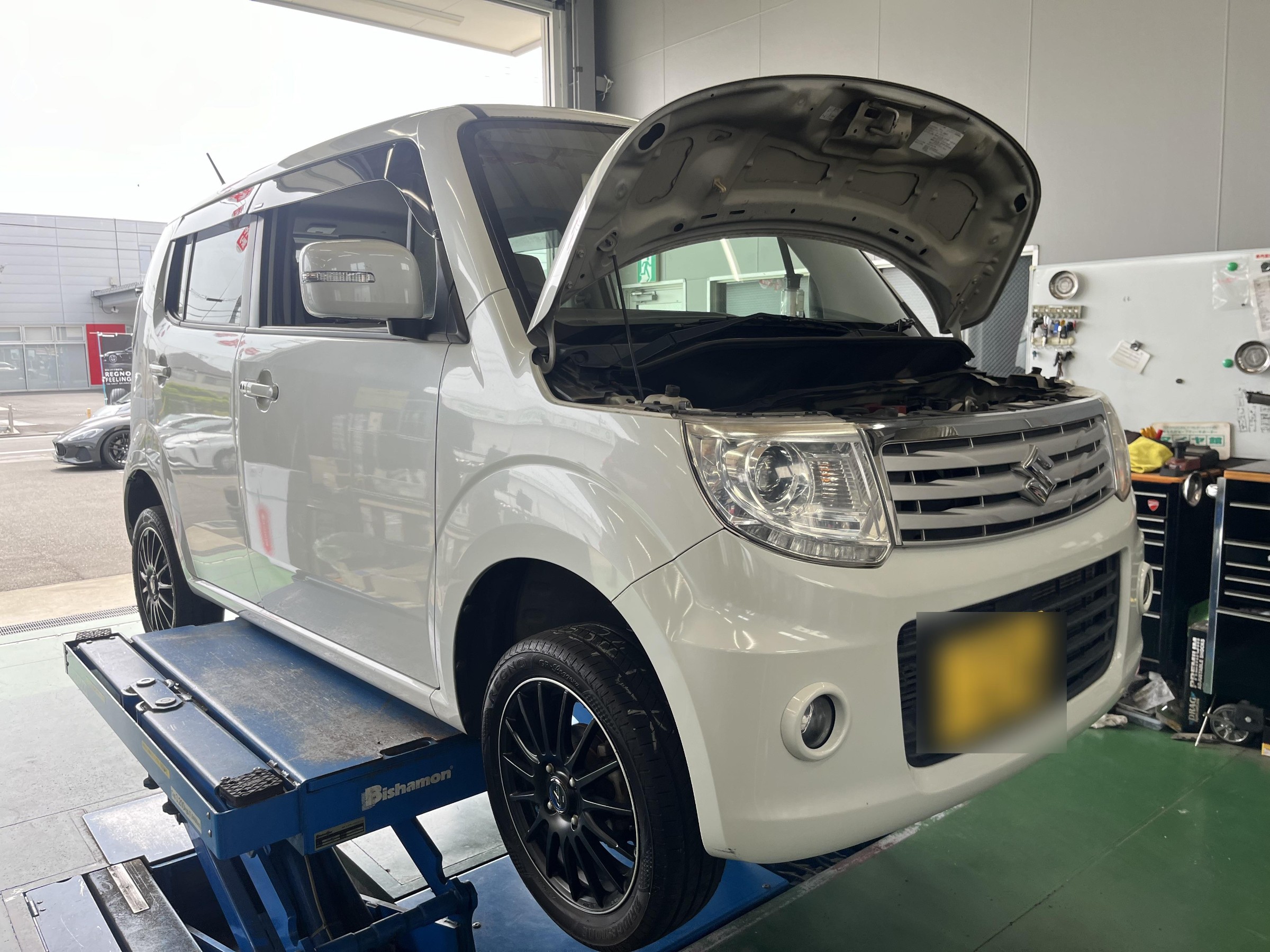 スズキ MRワゴン ヘッドライトコート、バッテリー交換のご紹介です。