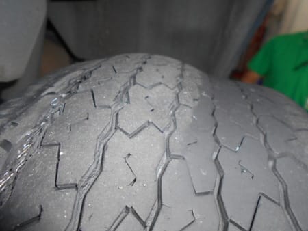 写真にあるように外見普通に見えますが、詳しく見てみると大変なことになっている場合があります!空気圧の入れ過ぎでこのような状態になってしまいます