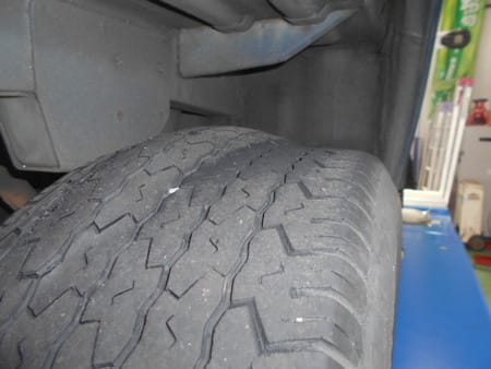 お客様が運転中突き上げがヒドイとをおっしゃっていたので、このタイヤが原因ですね(^^;)