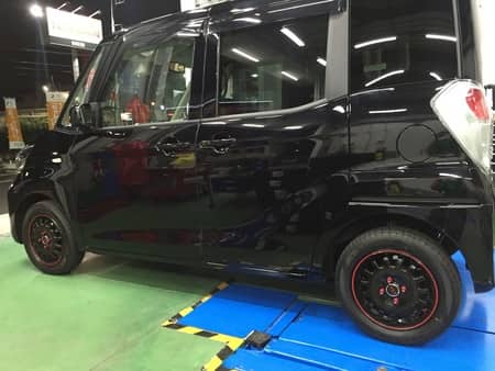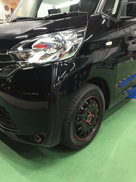 お取り付けした車両はデイズルークスで、リムに赤いラインの有るホイールでしたので、迷わずレッドカラーをお取り付けいたしました!!