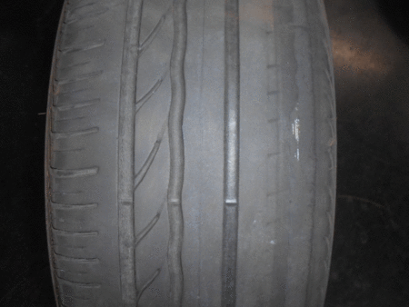 外したタイヤを見ていると、タイヤの外側の溝が極端に偏った減り方をしておりました。