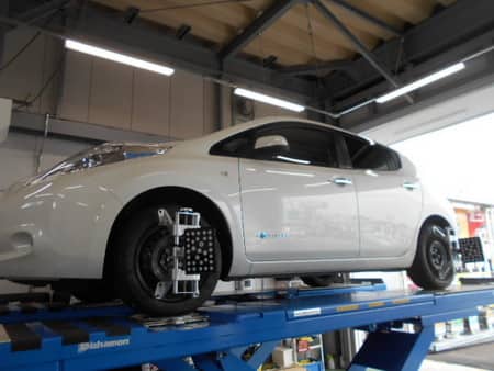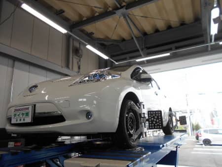 リーフのタイヤ交換とアライメントを実施致しました。