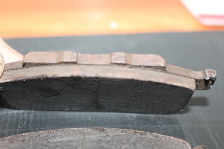 に亀裂が!!パッドの残量は約6.0mm。通常ではまだまだ使える残量ですが、
