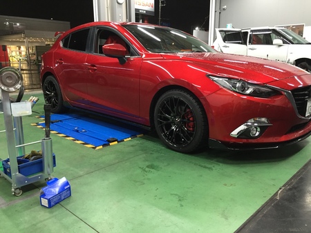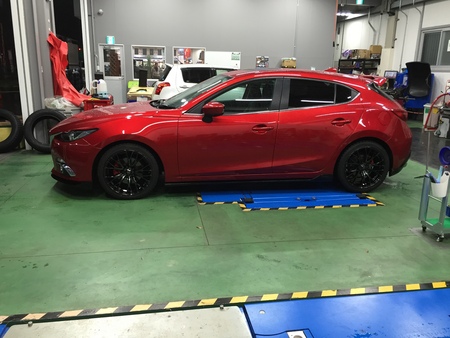 真っ赤なアクセラに黒いホイールがお似合いです!