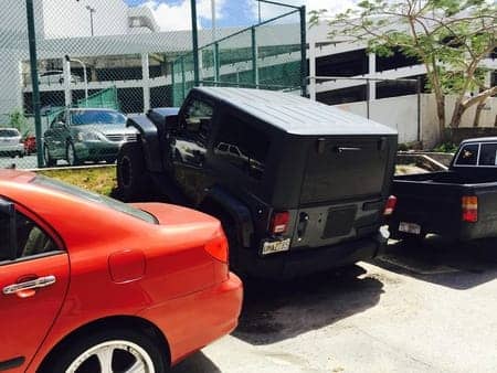 そんな街中で、新しいタイプの駐車方法で止まっていたジープJKを発見!!