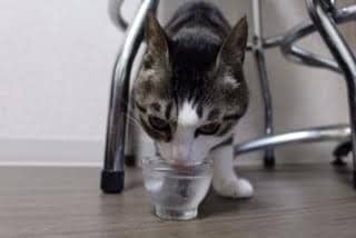 この猫は、コップからしか水を飲まないという、強い意志があり。