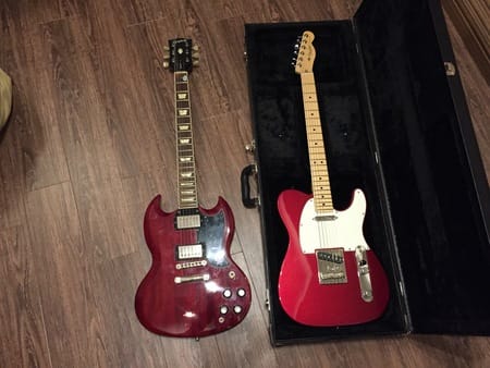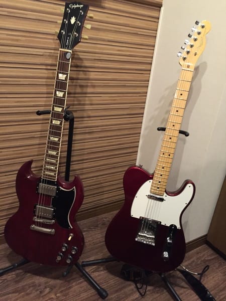 画像の右が新しく買ったギターで、左はいままで使用していたギターです。