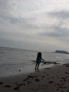 娘の着替えはあるけど、私は何もないので波打ち際で一緒に遊んで