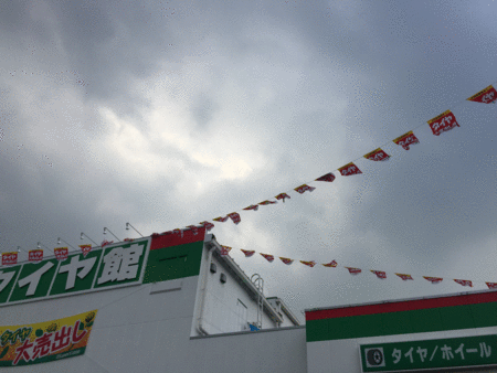当店の屋上から旗を敷地内のコーナーまで取り付けているのですが、風や日光でボロボロになってしまったので新しいものに取り替えました。
