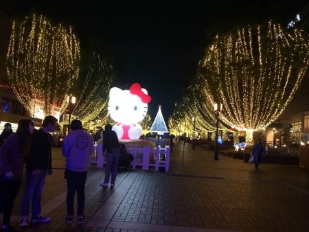 私の最寄り駅でもある多摩センターに歩道があるのですが、毎年恒例のサンリオとコラボしたクリスマスイルミネーションが行われていました。