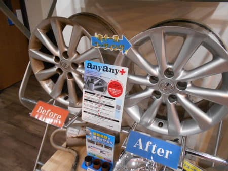 「any any」コーナーには実際にコーティングを施工したホイールと