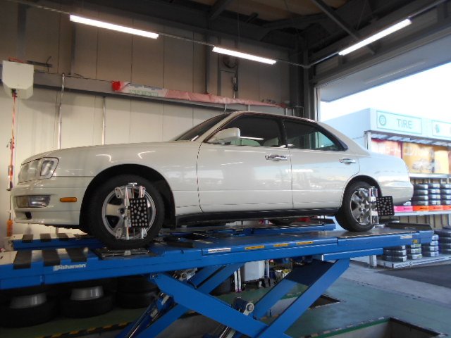 本日は日産グロリアHY33のアライメント調整を実施しました。