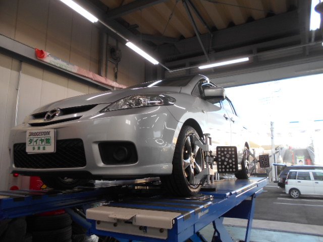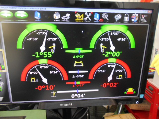 先日ご紹介致しましたプレマシーのアライメント調整を実施しました。