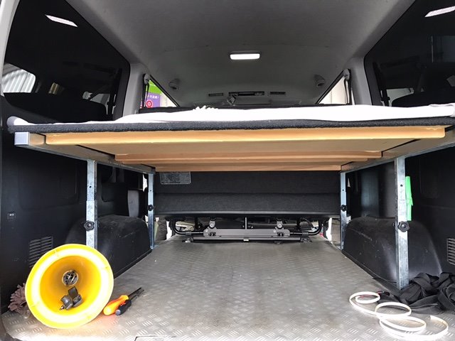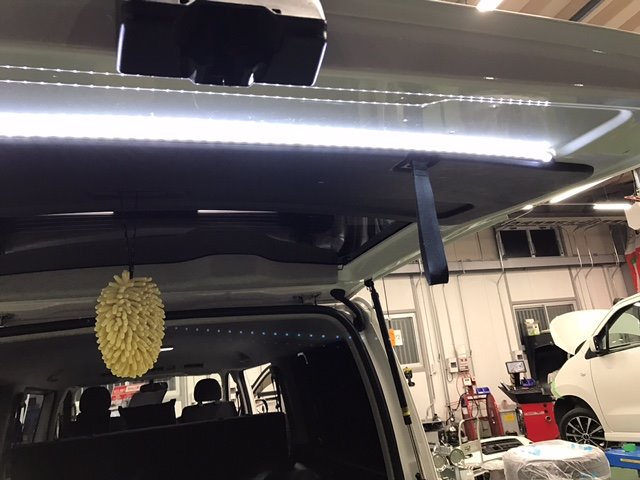 本日はお得意様からのご要望でハイエースの荷室にLED照明を取り付けました!