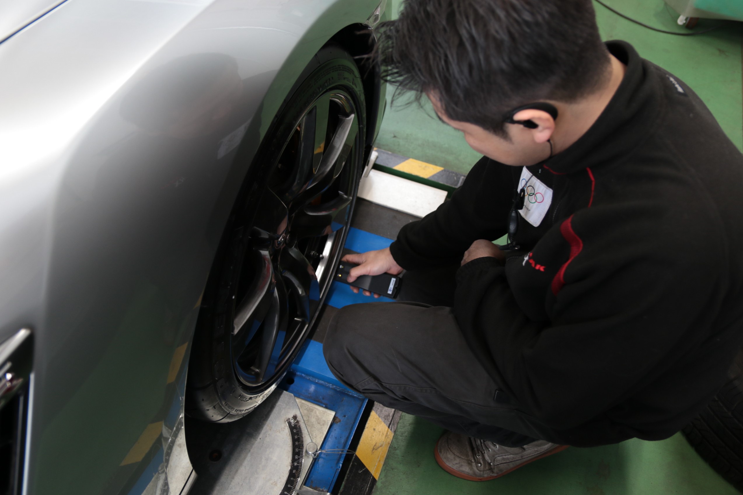 取り付けた新品の空気圧センサーを送信機を使用してID登録をし、車両に飛ばします。