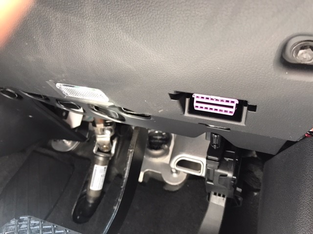 コラム下のカバーを外してOBDⅡに差し込み、本体を固定して終了です。