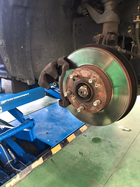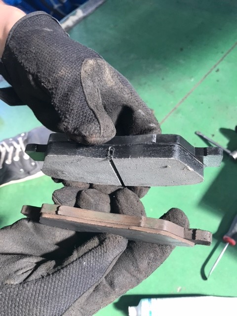 冬タイヤから夏タイヤに交換にお越しいただいたお客様のストリームですが、タイヤを外した際ブレーキを見たら、ブレーキパッドの残量が少なくなっていました。