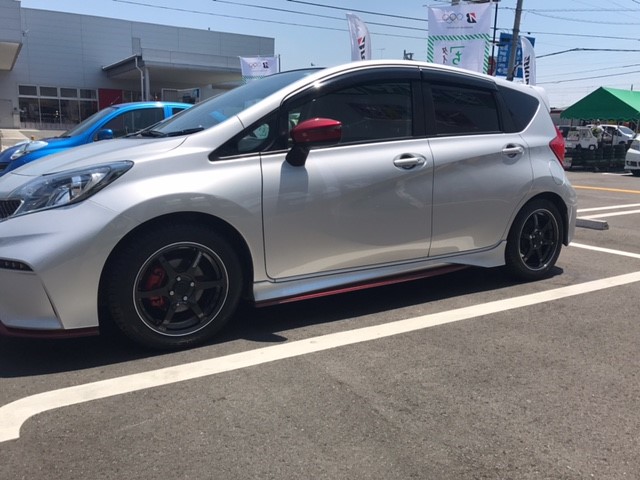 ノートニスモの純正ホイールもかっこいいのですが、やはりRAYSのホイールのほうがスポーツ感も増しかっこいいですね!