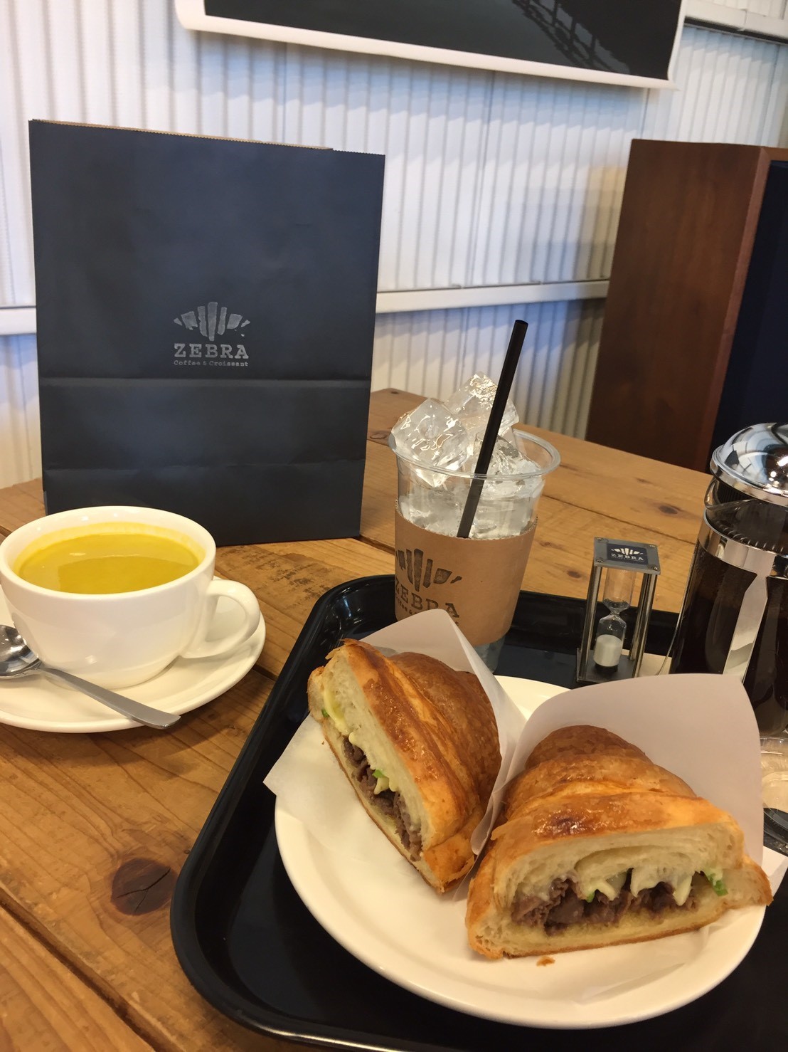 クロワッサンとかぼちゃポタージュ、アイスコーヒー全部美味しかった☆
