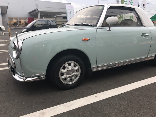 フィガロ タイヤ交換 ポスト 2017年5月30日 本日は珍しいお車が入庫しました。 日産のフィガロです! K10マーチがベースのおしゃれな一台です。 昔、叔母が乗ってたのを思い出しました! 内装もこだわっていて雰囲気が今の車にはないレトロ感がいいですね♪ タイヤサイズは165/70R12です。このサイズはレアなので設定パターンはスニーカーです。 タイヤも新しくなり、ばっちりですね♪ 本日はありがとうございました。 担当:清水