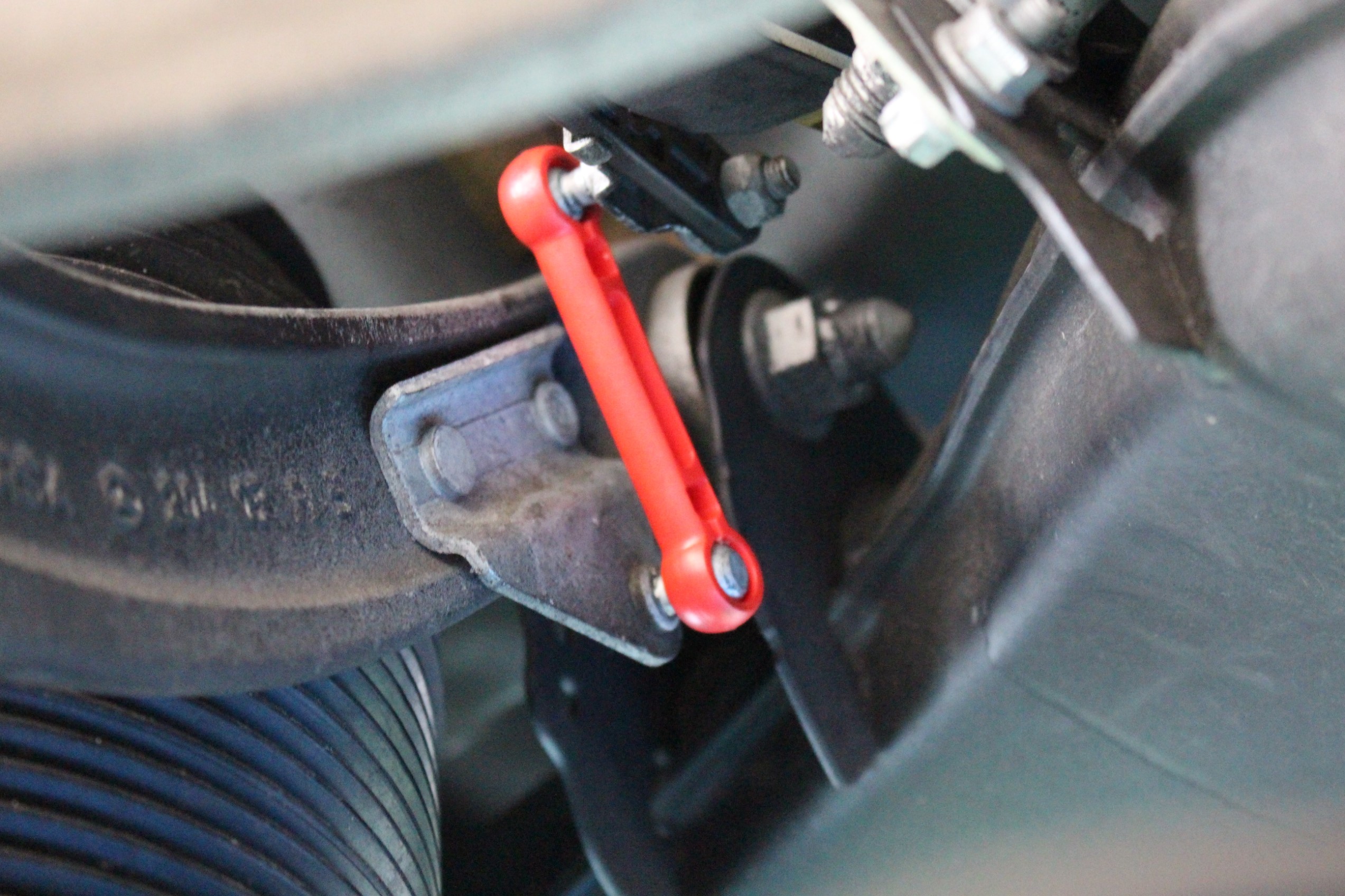 赤いのがローダウンブラケットです。このブラケットに変えて車高の信号を変えます。