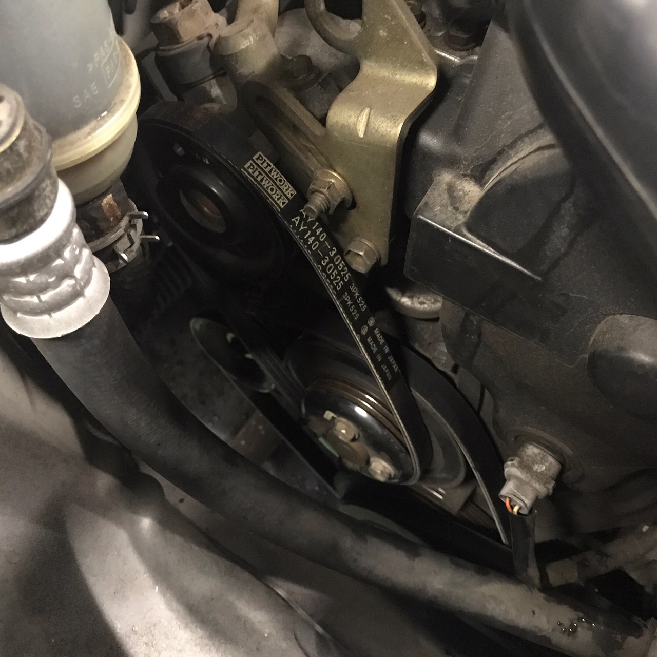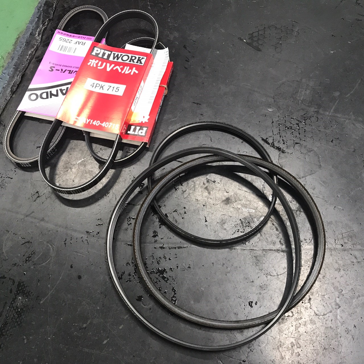 車検整備でご入庫のムーブ、ベルト鳴きがするのとひび割れてましたので交換させていただきました。