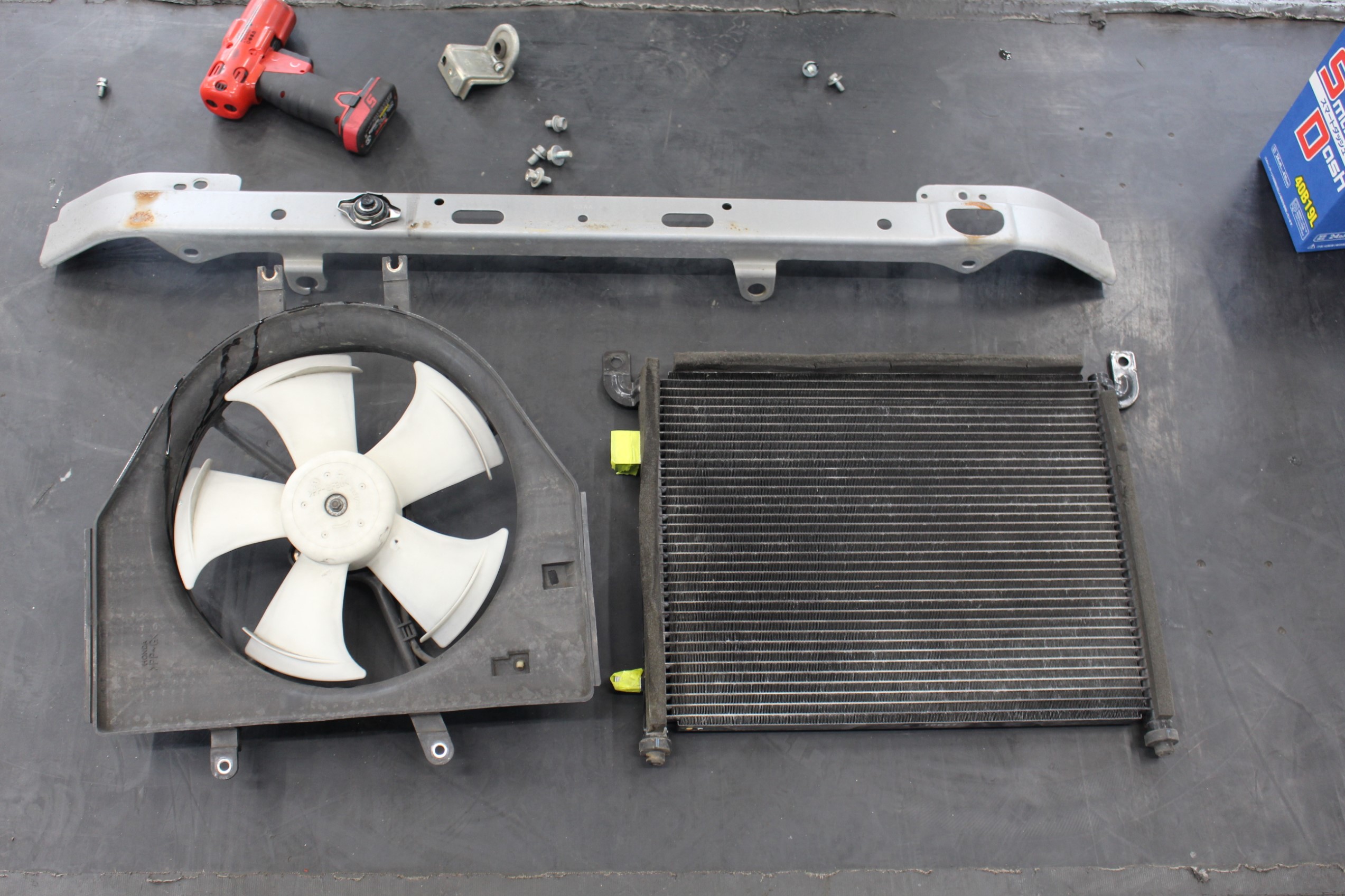 軽自動車の場合、ほとんど前側のパーツを外します。