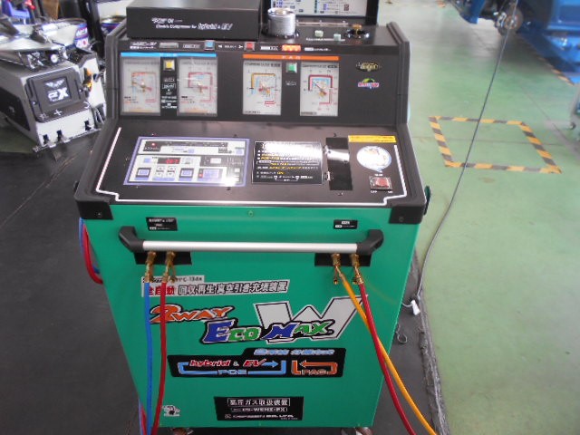 こちらの機械が夏は大活躍しています!!ちなみにハイブリッド車両のエアコンガスメンテナンスにも対応しています!!