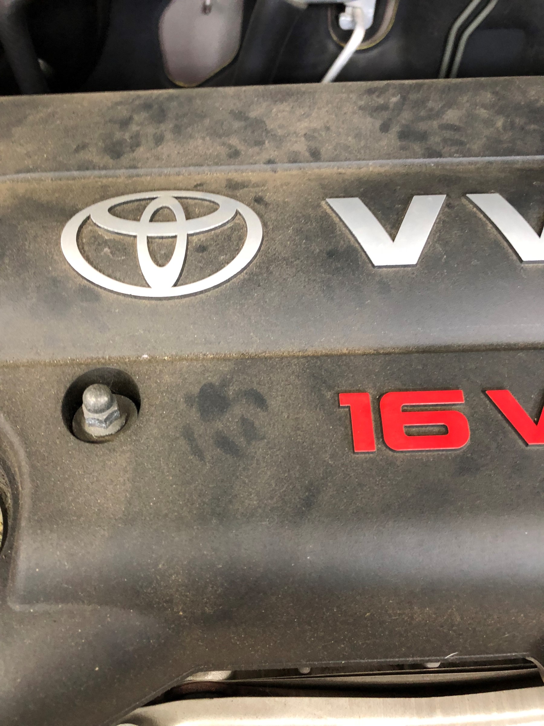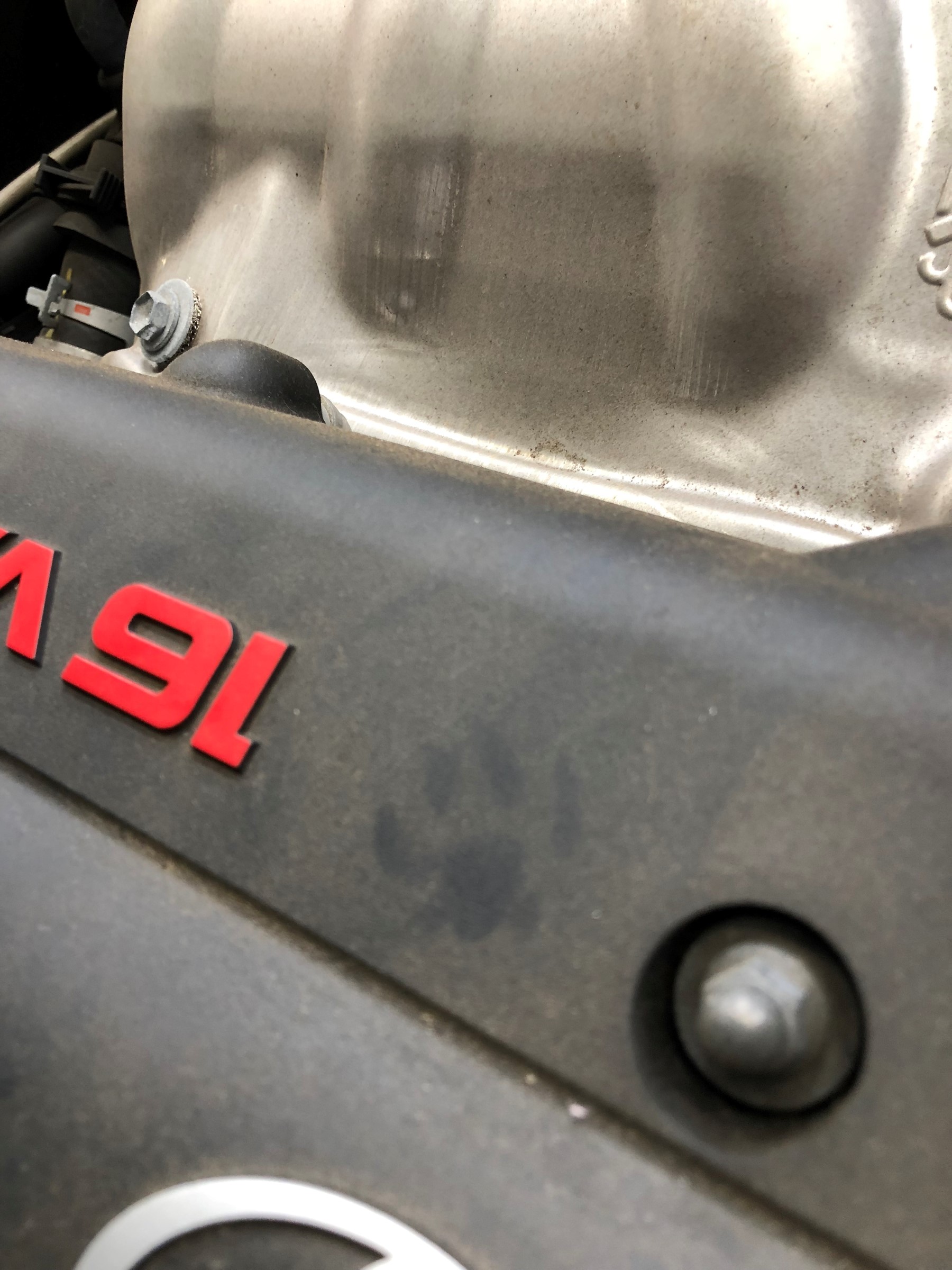 先日、車検で作業させて頂いた車両のエンジンルームにありました!!足跡が・・