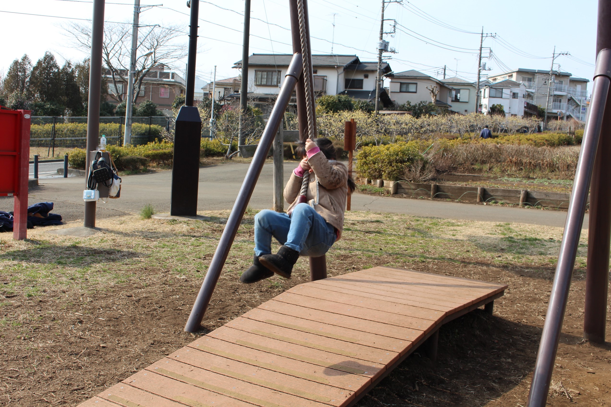 この様な遊具が有ったり、ロープ遊びも出来る公園です。