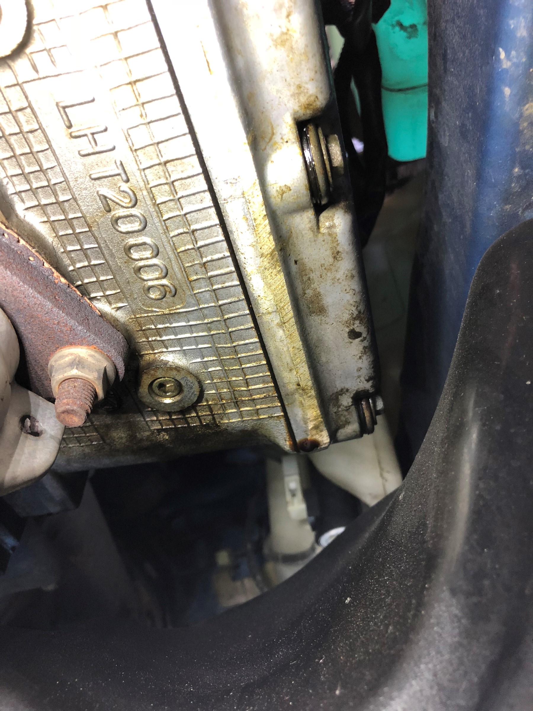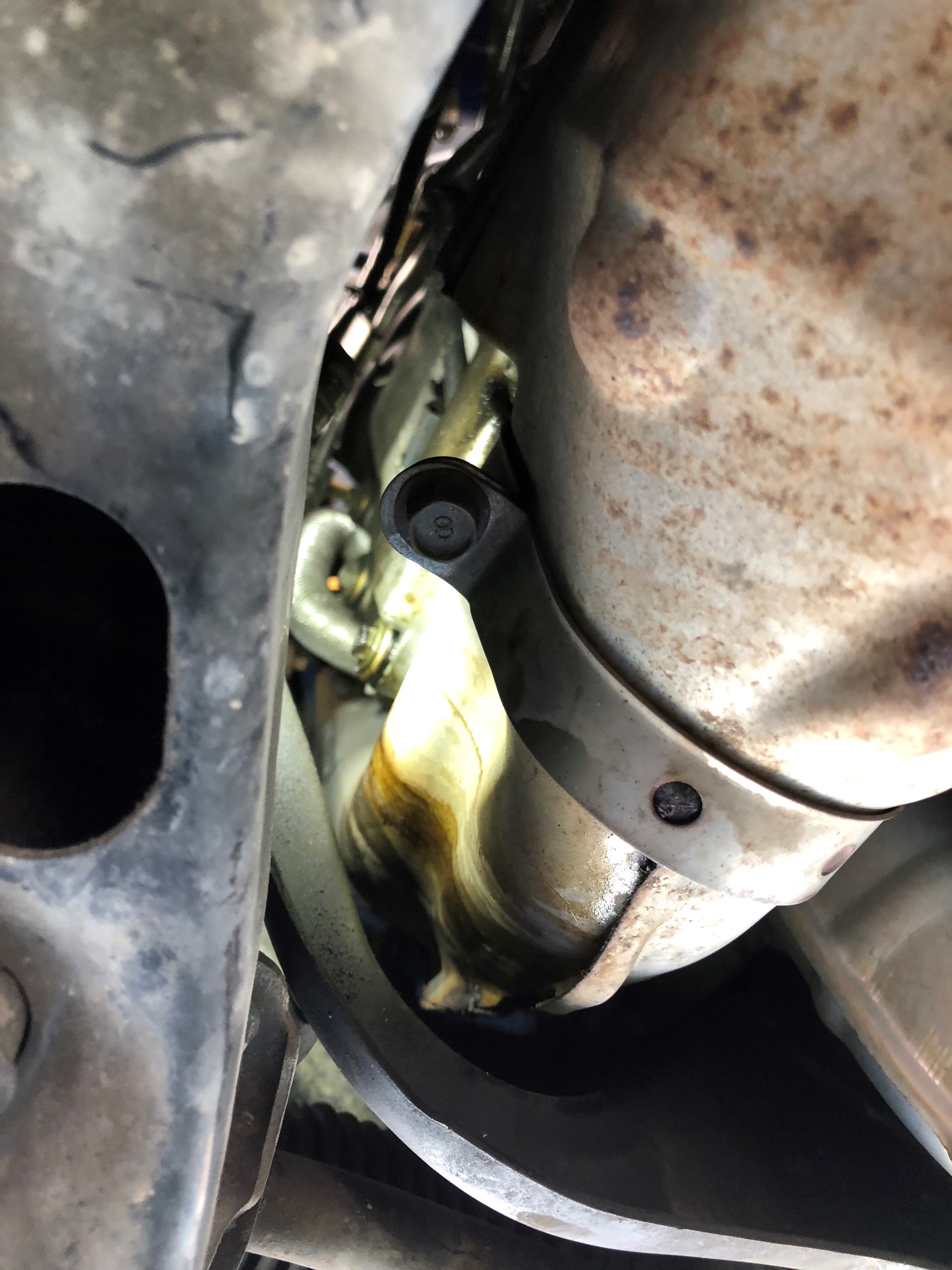 漏れたオイルがマフラーにかかってしまっています。これではボンネットから