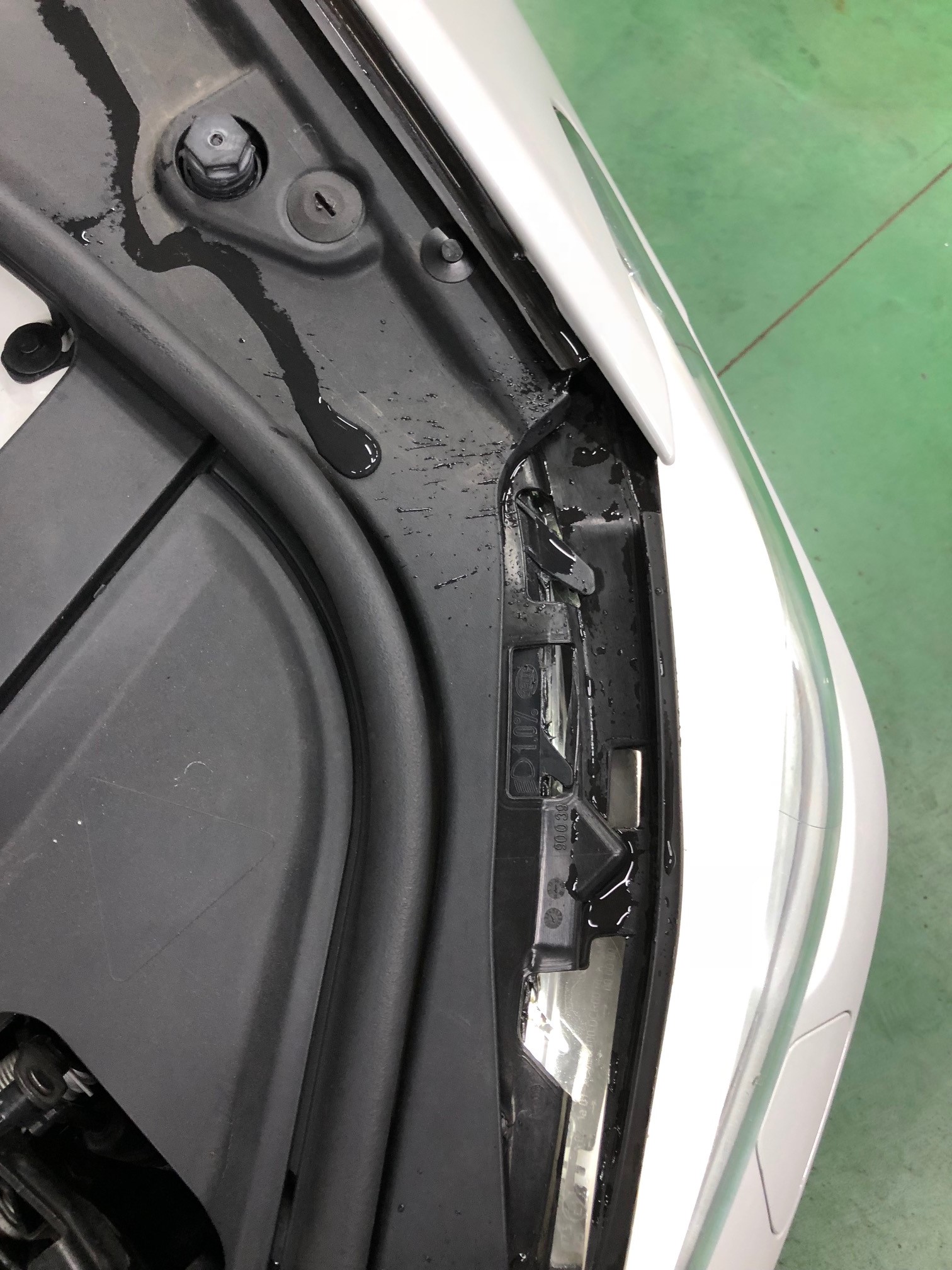 右側は水が浸入しないのですが、左側はこんな感じに水が浸入します・・モールを少し加工します。
