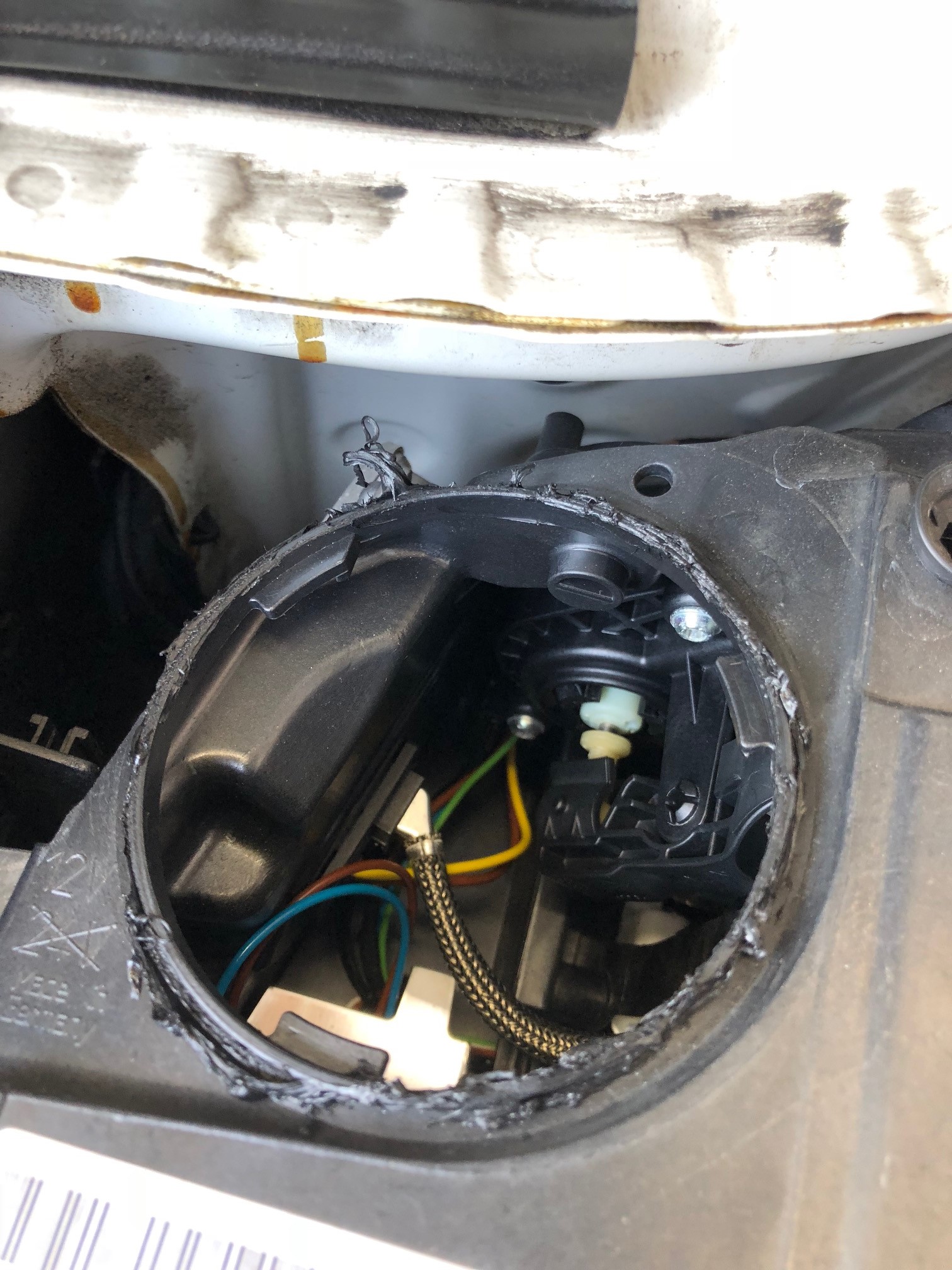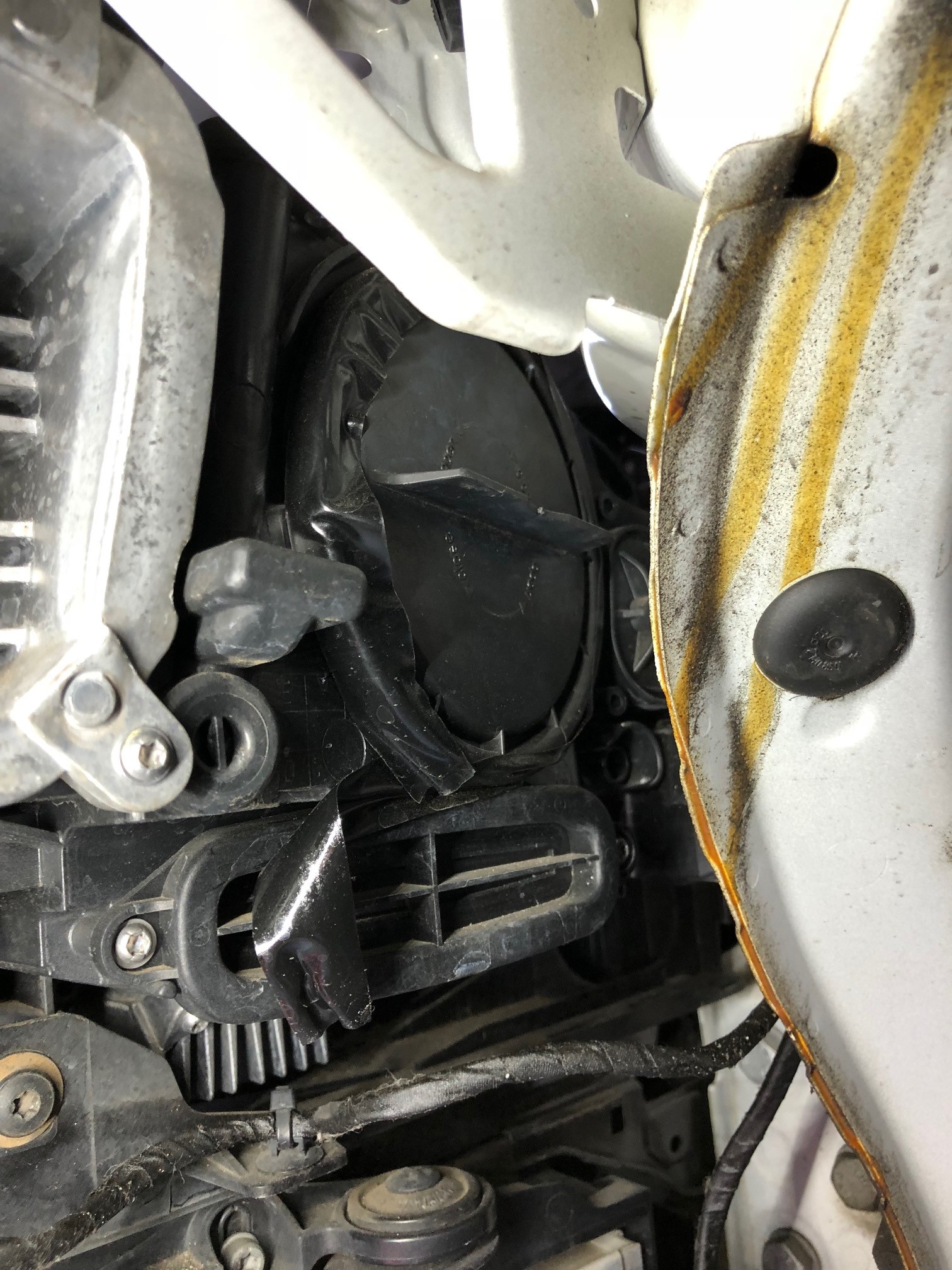 一度修理したのがこちら。ブチルテープがビッシリ・・綺麗に剥します。