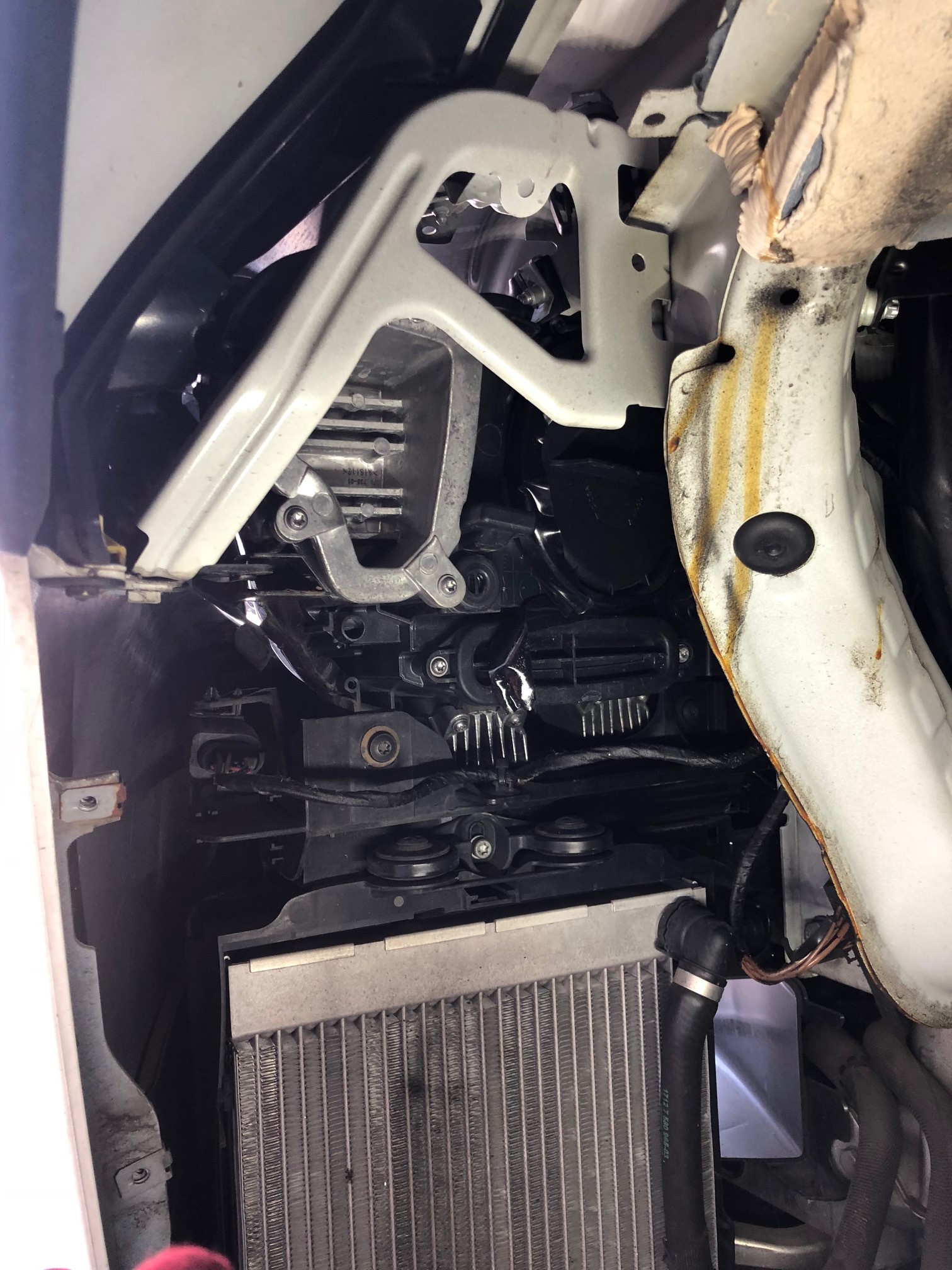 バンパー下側にラジエター?が付いています。ヘッドライトの真下なので水蒸気が昇って行きやすい