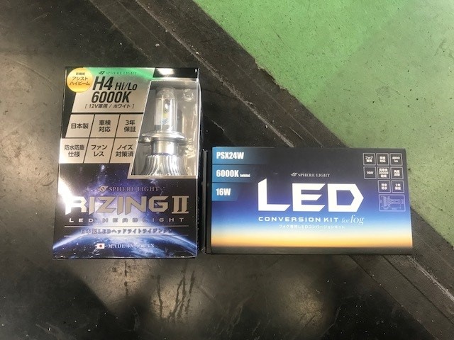 本日の作業は、スフィアライト製 LEDヘッドライトとLEDフォグランプの取り付けです。
