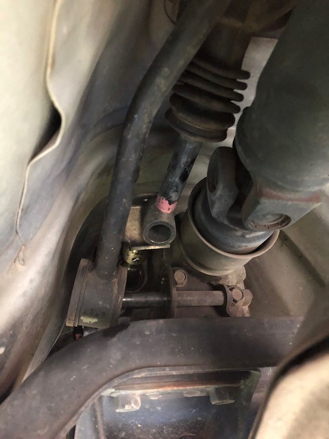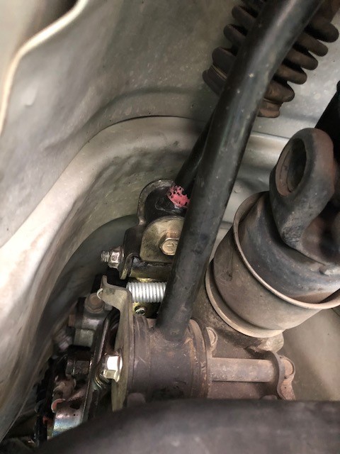 リフトアップしてシフトレバーを確認。やっぱりブッシュがいなくなっています。