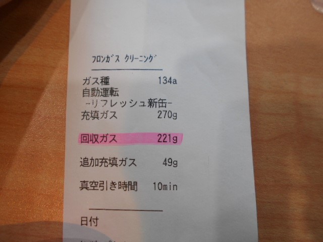 ガス量は車によって決まっています。(エンジンルームのどこかにこのシールが貼られています。)