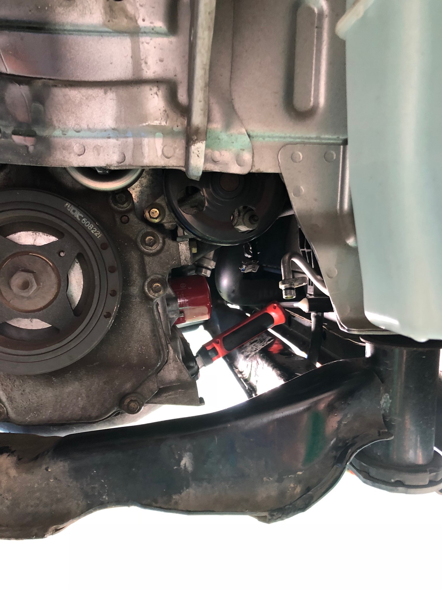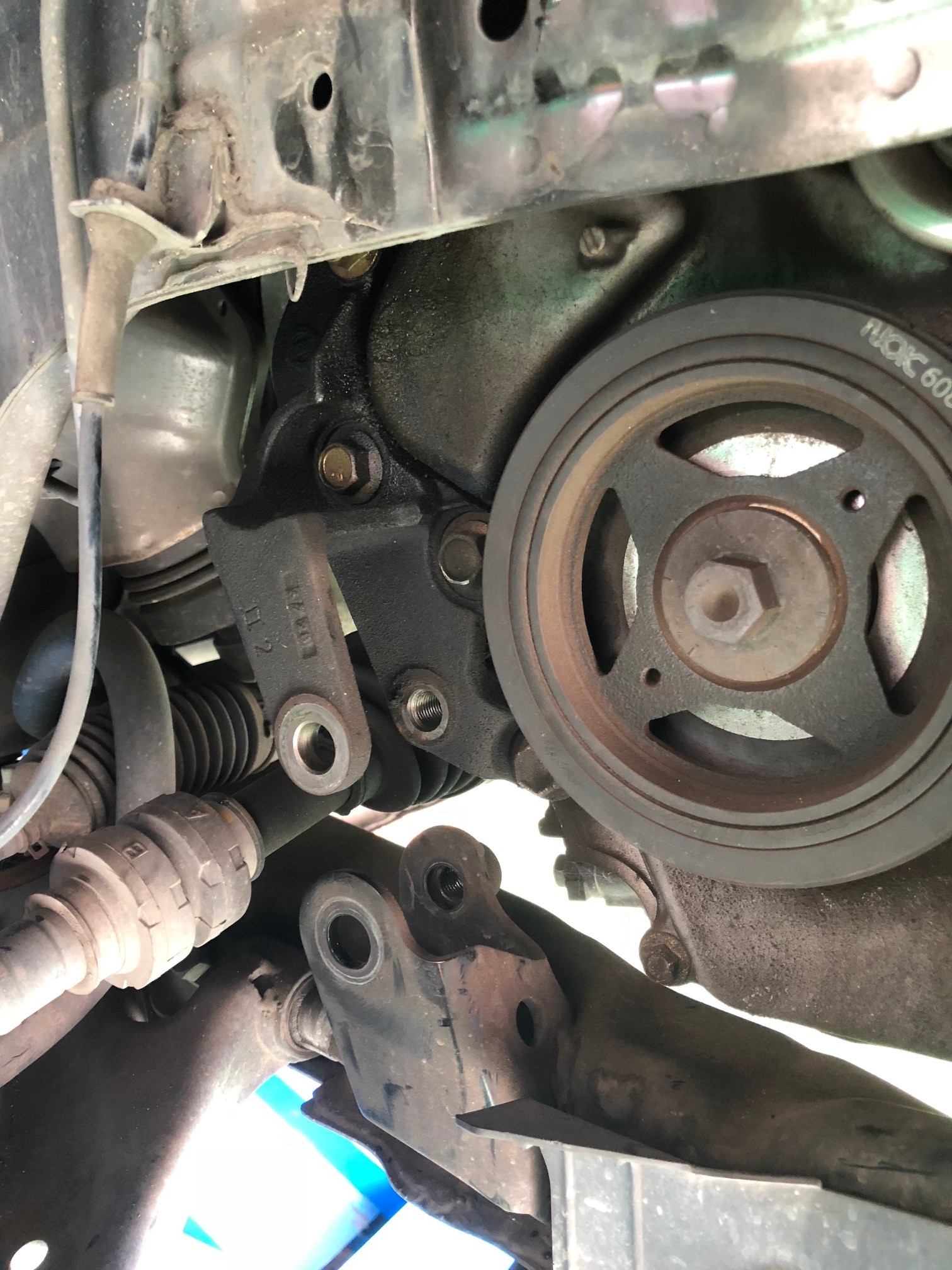 そしてコンプレッサーの取り外し。今回、エンジン横のマウントが切れていたので一緒に