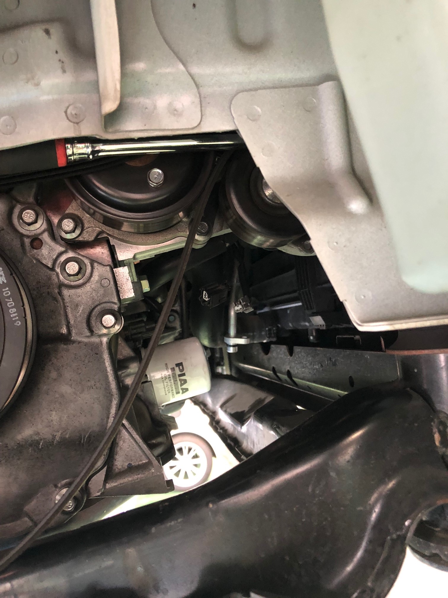 ガスを回収し終わったらベルトを外してコンプレッサーを取り外します。