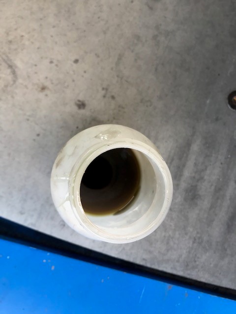 抜き取ったオイルはこんなに汚れています!!