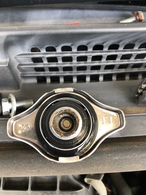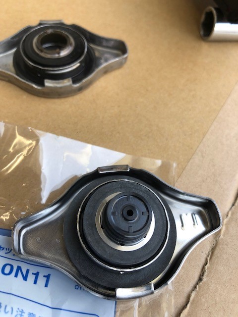 部品を外していく中でラジエターキャップを取り外すと、なんと破損していました。