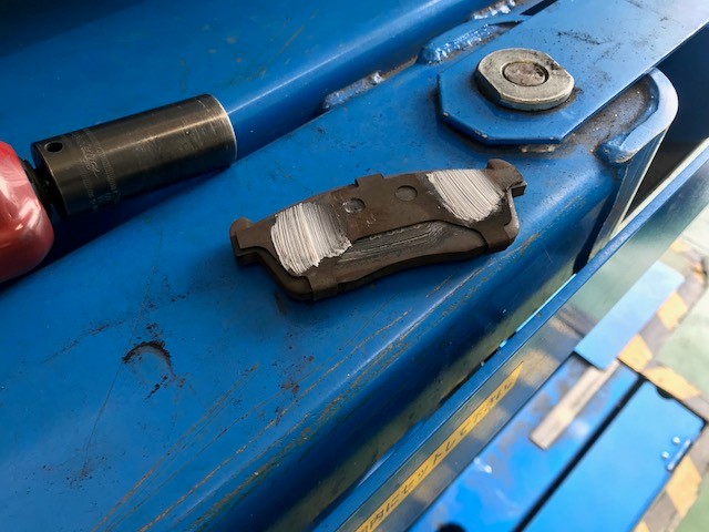 キャリパーの当たり面にグリスを塗ります。この後両端もグリスを塗っていきます。
