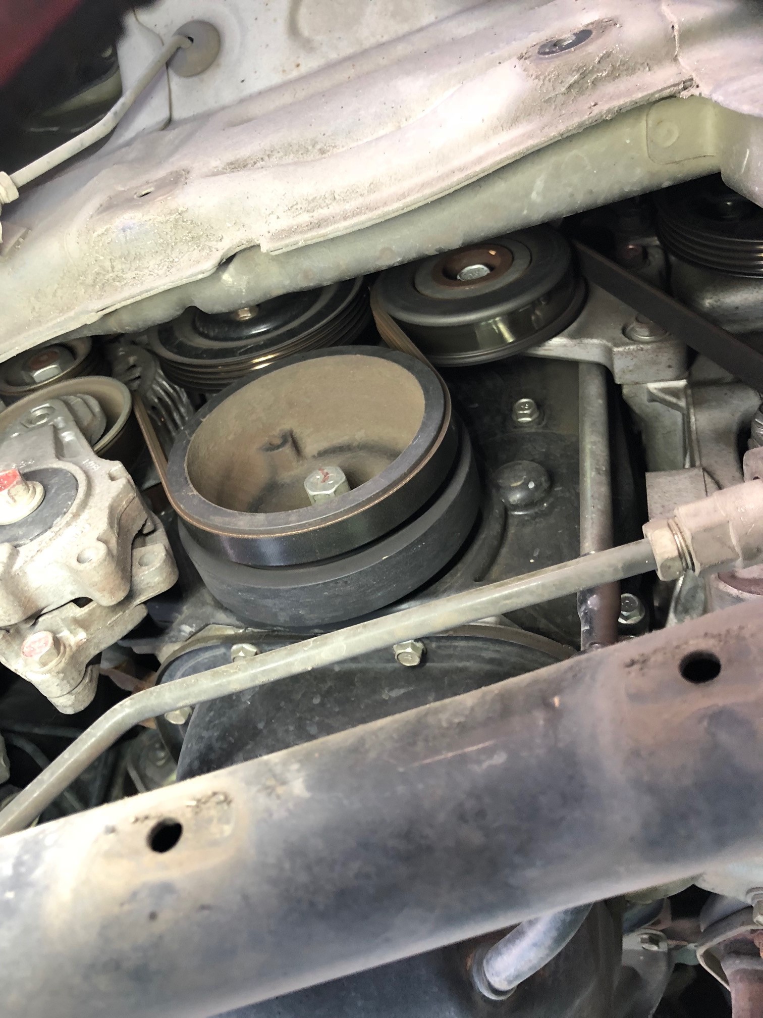 まずシングルベルトを取り外し、タイミングカバーを外すのに邪魔になってしまう