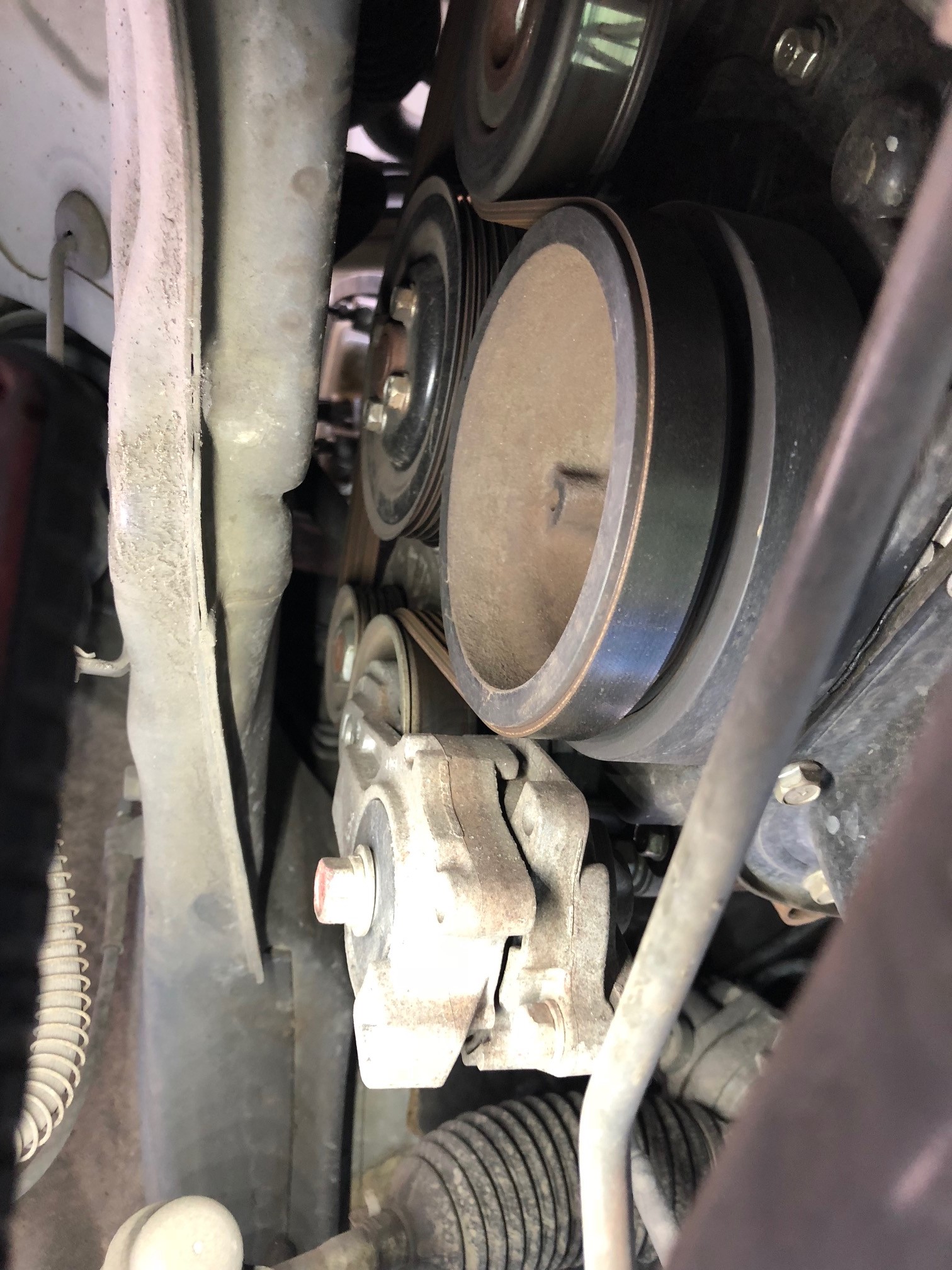タイミングベルト、シングルベルトオートテンショナーの交換で作業を進めます。