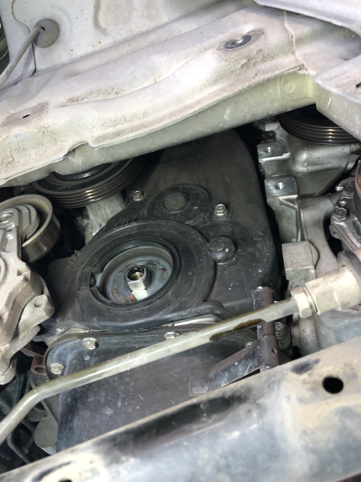 タイミングベルトカバーを外すとタイミングベルトにたどり着きます。
