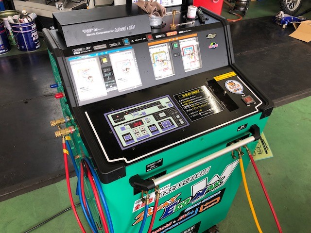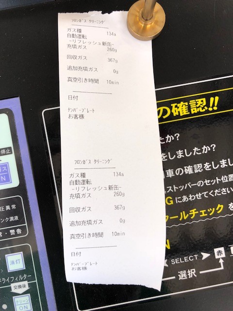 ここから自動で真空引きをしてコンプレッサーオイルと新しいエアコンガスを入れます!